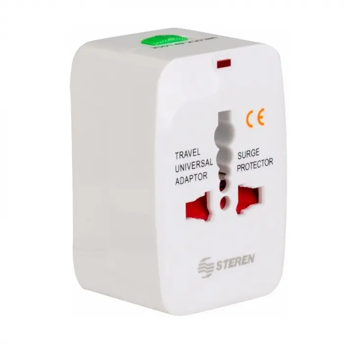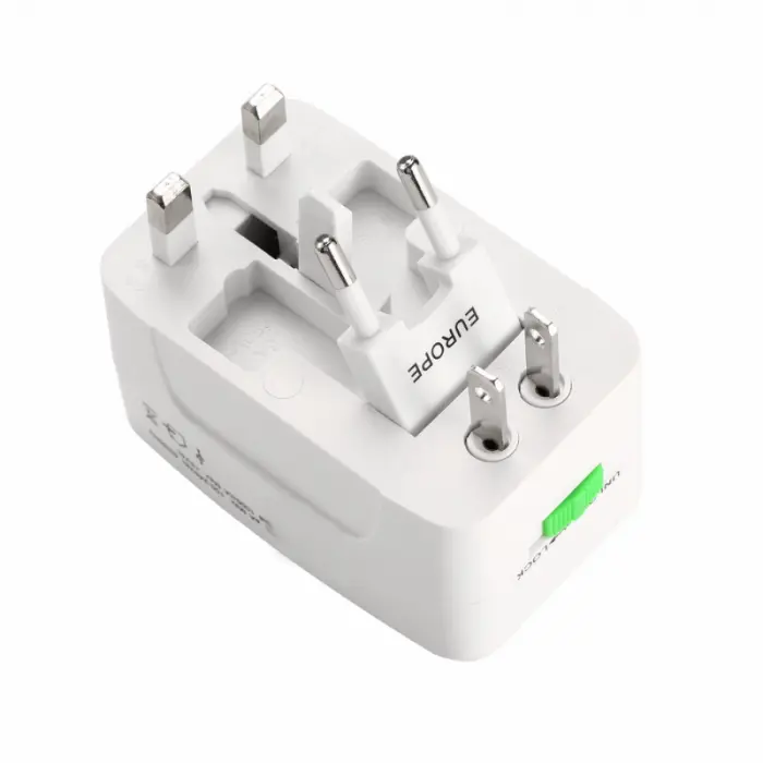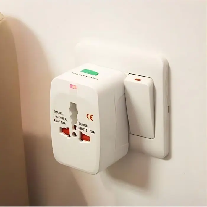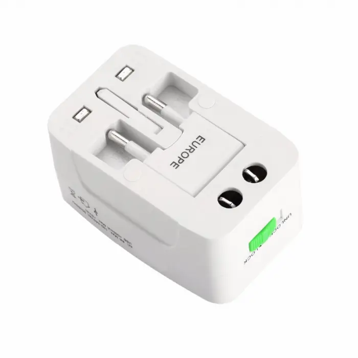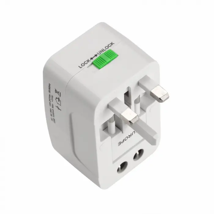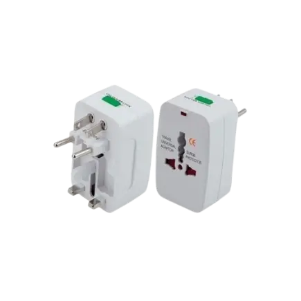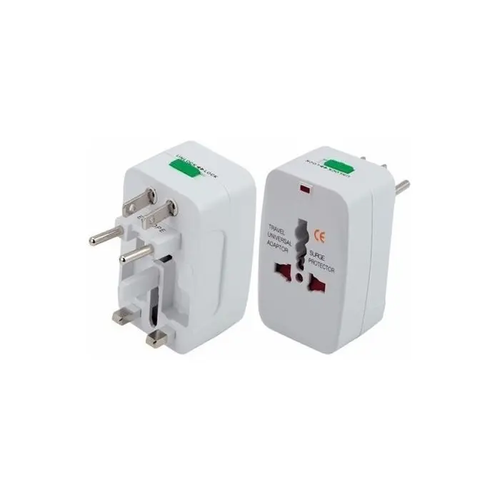 - Adaptador universal con todos los distintos tipos de enchufes usados en USA, Europa, Asia,etc.