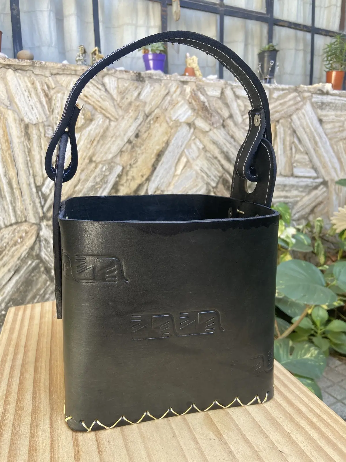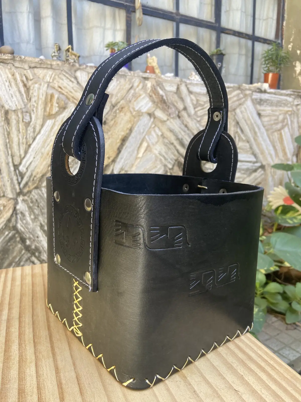 100% CUERO, lo que (a diferencia de otros materiales) te asegura durabilidad y tranquilidad a la hora de su uso en exteriores. También es fácil de limpiar y no necesita cuidados especiales.